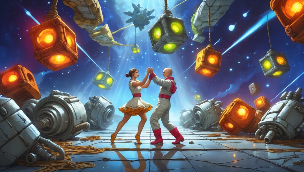 The calm after the gale. A nocturne of soft piano and gentle clarinet, shimmering with jazz undertones. It’s the harbor’s song — where gold and gossip flow beneath the lantern glow.