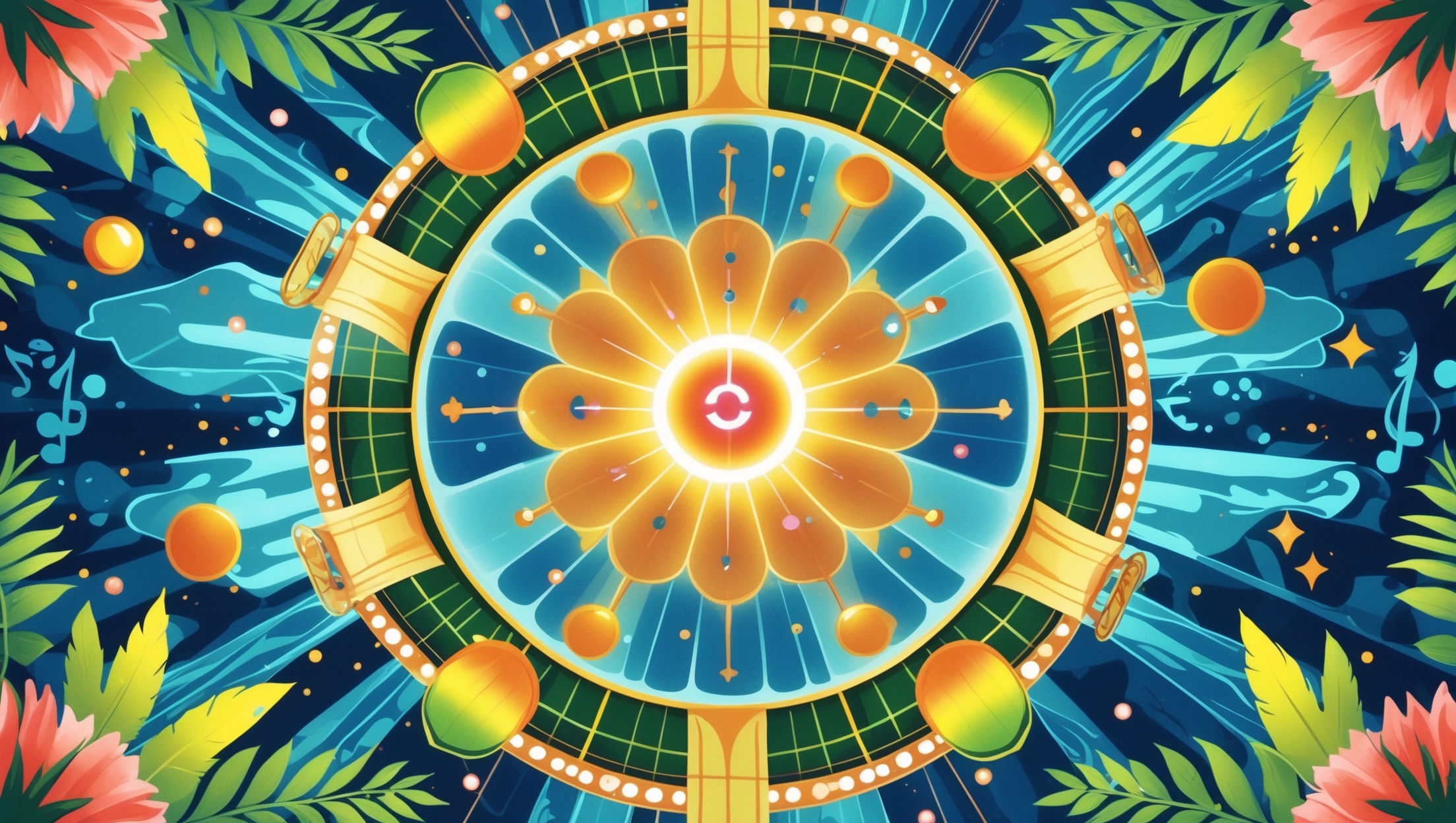 The AI-generated art is drenched in tropical colour β turquoise water, sunset oranges, and the cool blue of the game’s signature ice-cube dice. Cocktail glasses, palm fronds, and wooden coaster boards fill every frame. The visual style is warm, inviting, and unapologetically fun β a permanent vacation in every image.